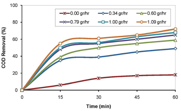 問:剛才看到一個文件里面提到的氧化效率=(進水cod-出水cod)×處理水量(m3/h)/(實際投加的臭氧量×2×1000),說是這個效率正常為15%