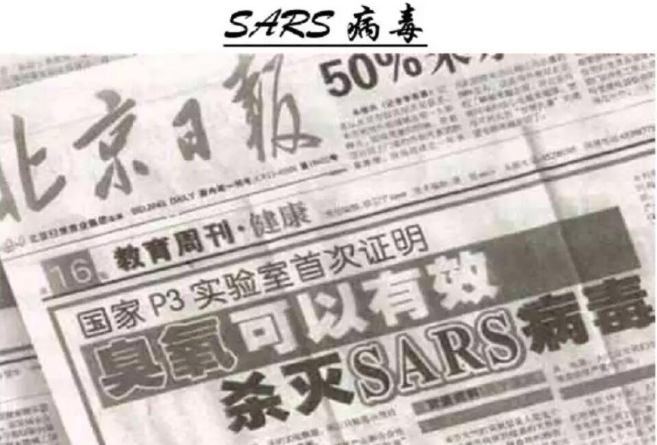 2003年有北京日報報道“通過實驗和臨床驗證,臭氧可有效殺死SARS病毒”。
