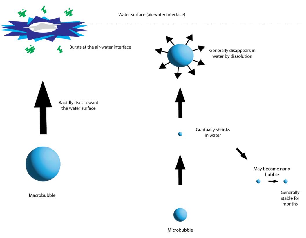 納米氣泡的定義是它們在水中的獨特性質(zhì)。這些獨特的特性可能有助于將臭氧/氧氣溶解到某些水中。此外,臭氧因自然半衰期衰變而恢復(fù)為氧氣后,剩余的氧納米氣泡可能會繼續(xù)溶解在水中,并長時間氧化水中的化合物。有報道稱納米氣泡在水中停留數(shù)周。