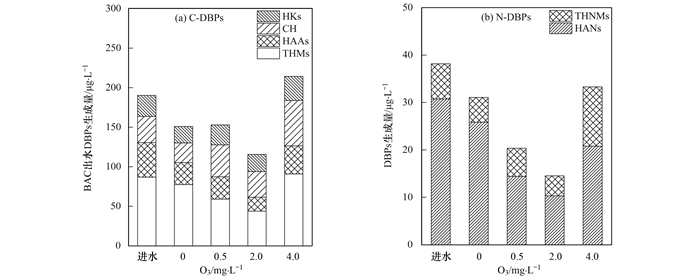 圖1進水和不同臭氧濃度下BAC出水中DBPs的生成特征